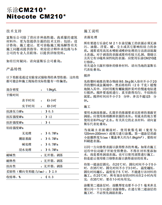樂涂Nitocote CM210彈性水泥基涂料