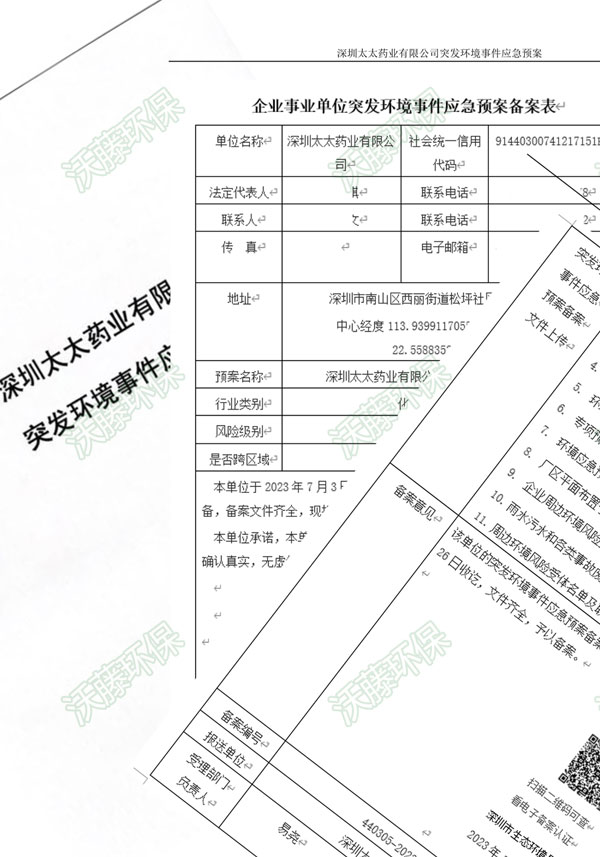 為積極應(yīng)對企業(yè)突發(fā)的各類環(huán)境事件,建立健全深圳太太藥業(yè)有限公司,對突發(fā)環(huán)境事件的應(yīng)急處置機(jī)制。提高應(yīng)急處置能力,及時、有序、高效、妥善地處置突發(fā)環(huán)境事件。根特成立預(yù)案編制小組,編制環(huán)境應(yīng)急預(yù)案。