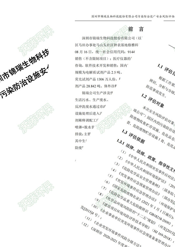 為建立健全深圳市錦瑞生物科技股份有限公司應(yīng)對突發(fā)環(huán)境事件的應(yīng)急處置機(jī)制,積極預(yù)防、及時控制、消除隱患,提高環(huán)境事件防范和處理能力,盡可能地避免或減少突發(fā)環(huán)境事件的發(fā)生,保護(hù)環(huán)境,建設(shè)安全健康的生產(chǎn)環(huán)境,特編制本環(huán)境應(yīng)急預(yù)案。